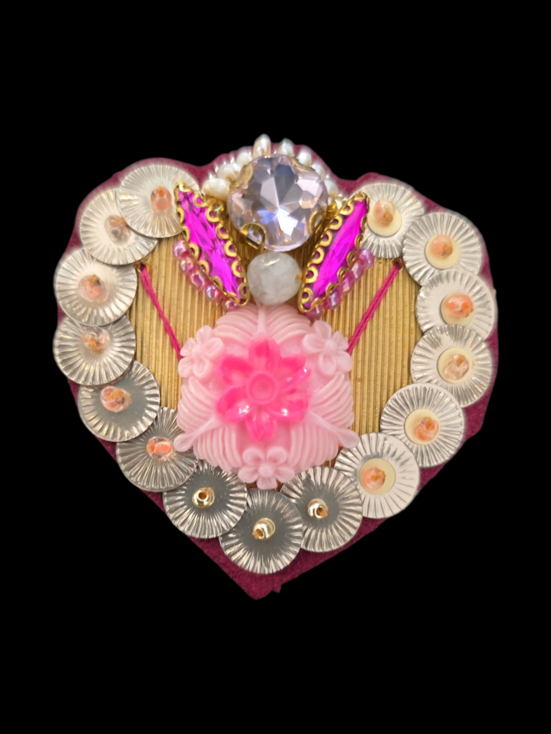 Cette broche en forme de cœur évoque une vibration marine, un éclat floral surgissant entre ciel et mer.