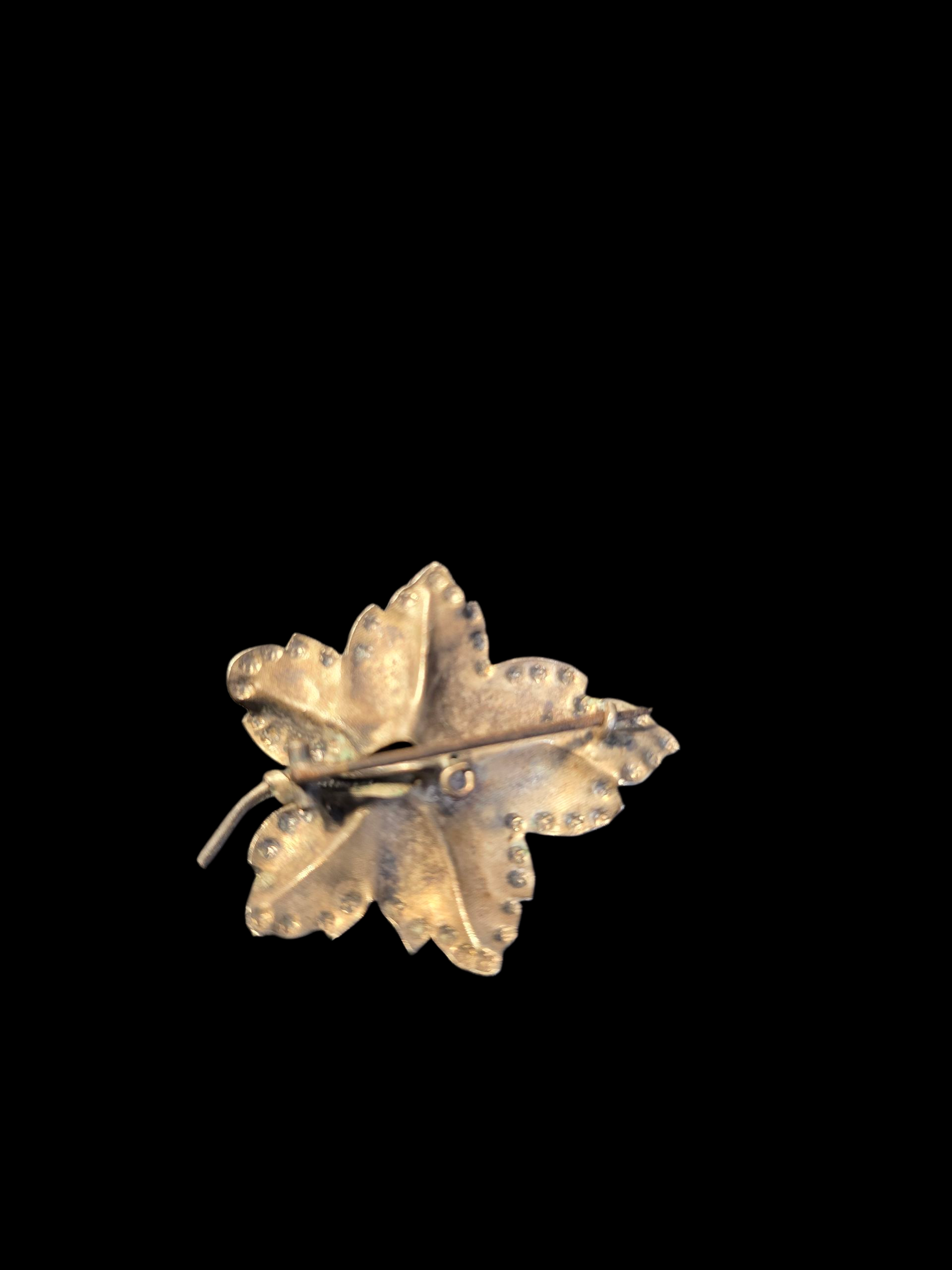 Broche Feuille Vintage "Souvenir" – Pièce Artisanale en Métal Bicolore